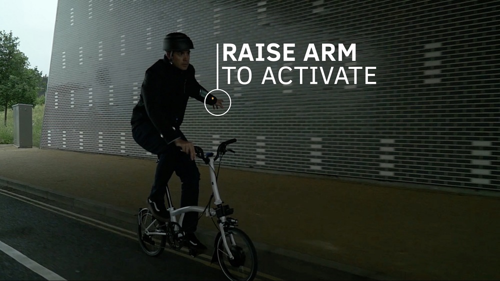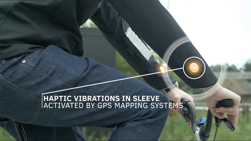 Este prototipo de chamarra inteligente cuenta con mangas que se iluminan para señalizar cuando los usuarios planean girar a la derecha o a la izquierda. La chamarra inteligente tiene conectada de forma inalámbrica un Smartphone y una aplicación de navegación para bicicletas que hace vibrar la manga para que el usuario sepa por dónde ir, utilizando mejores las rutas.