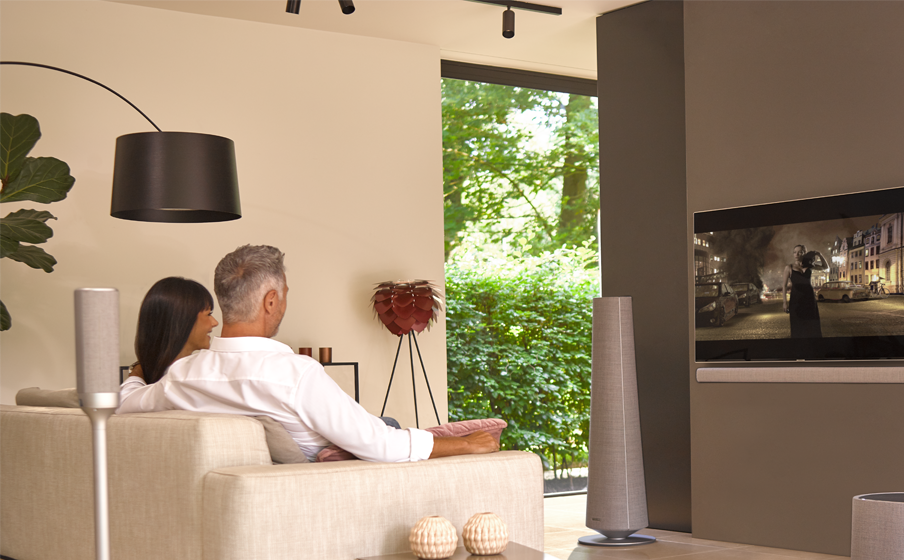 En cuanto a su diseño, esta familia de audio combina la innovación de audio en el hogar, con un diseño sofisticado y hermoso. La tela de lana que recubre las bocinas es de calidad premium, hecha por Kvadrat, repelente la suciedad y retardante de fuego.