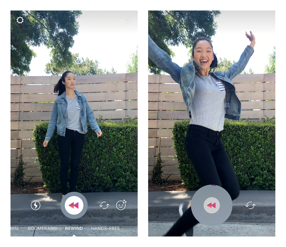 Al tocar la cámara y aparecerá el nuevo icono en la esquina inferior derecha. Al presionarlo aparecerán diferentes máscaras para colocar en fotos, videos, boomerangs o el nuevo modo «retroceso» (reproducción a la inversa).