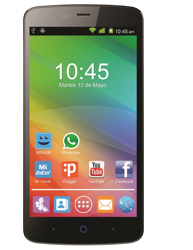 Incluye pantalla de 5 pulgadas, procesador QuadCore Mediatek, Sistema Operativo Android 4.4.2 Kit Kat, memoria interna de 8GB con capacidad para expandirse a 32 GB.